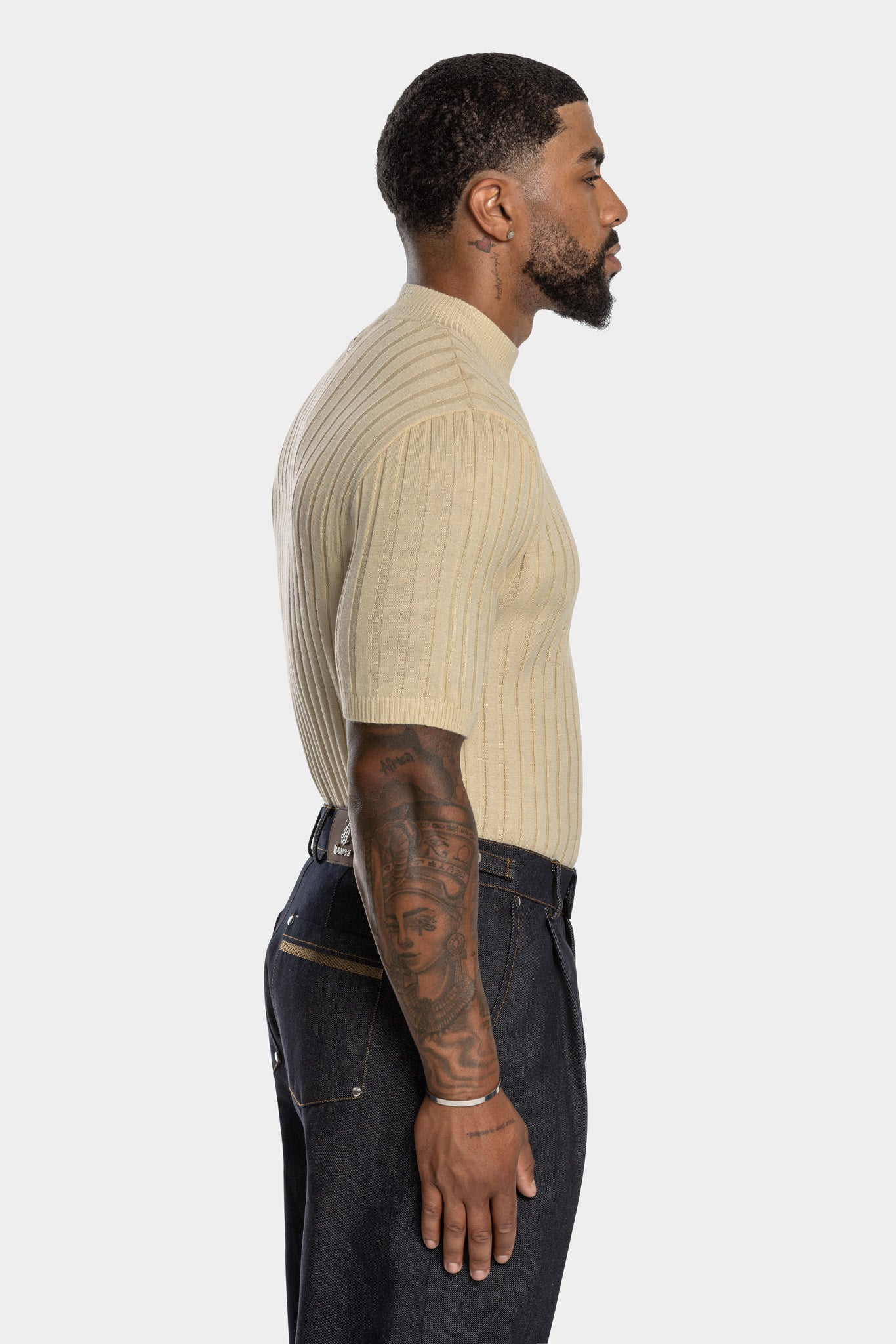 Part of our Core-Range. The high neck muscle fit Core Ribbed Knit Tee is a foundational piece, comprised of beautiful soft high stretch fabric. It's sculptured silhouette and subtle L'BOUGE 3D hardware on back neck offers refined presence, whether worn as a stand-alone for understated elegance or layered under our statement jackets to elevate your looks effortlessly. Available is three essential tones; Black, White and Beige.