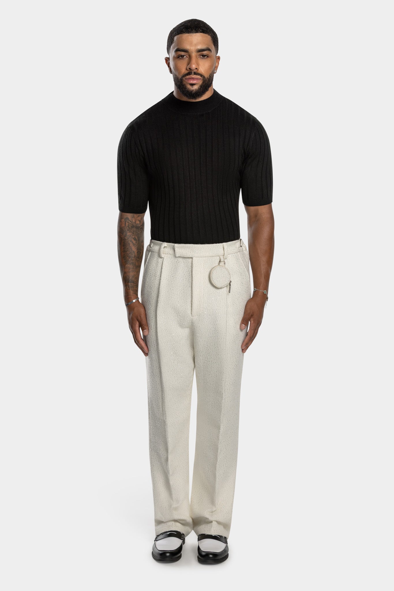 Part of our Core-Range. The high neck muscle fit Core Ribbed Knit Tee is a foundational piece, comprised of beautiful soft high stretch fabric. It's sculptured silhouette and subtle L'BOUGE 3D hardware on back neck offers refined presence, whether worn as a stand-alone for understated elegance or layered under our statement jackets to elevate your looks effortlessly. Available is three essential tones; Black, White and Beige.