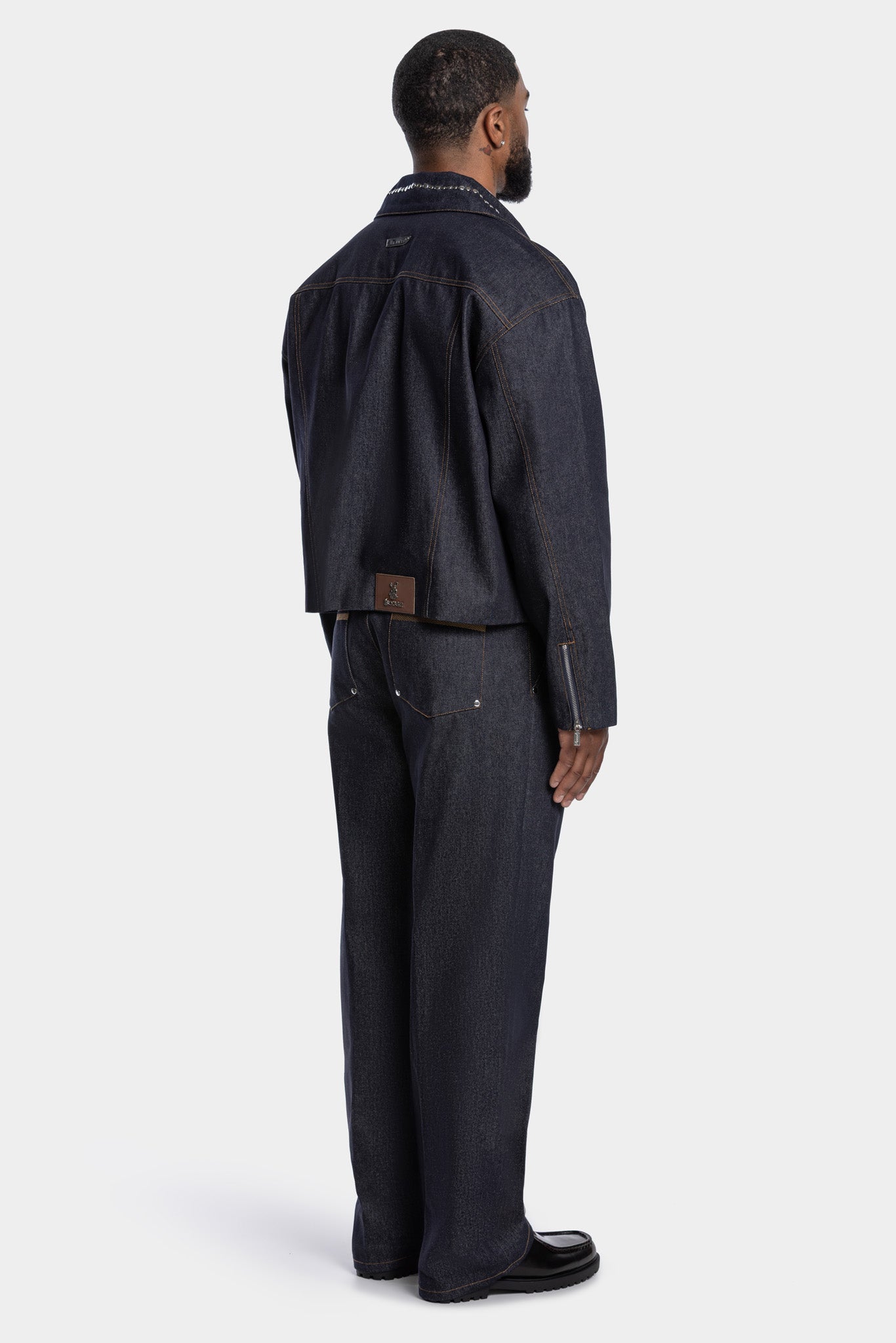 Crafted from premium heavy cotton denim, featuring a relaxed silhouette designed to balance structure and comfort whilst delivering confident volume and maintaining a refined profile.
