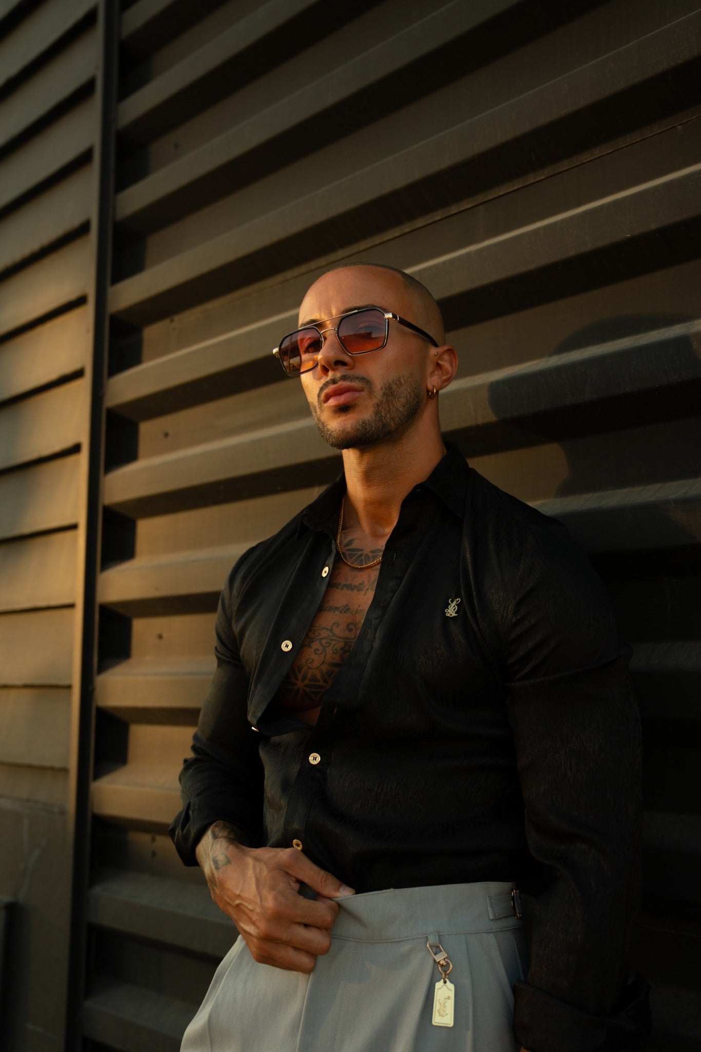 LONG SLEEVE JACQUARD SHIRT – BLACK
