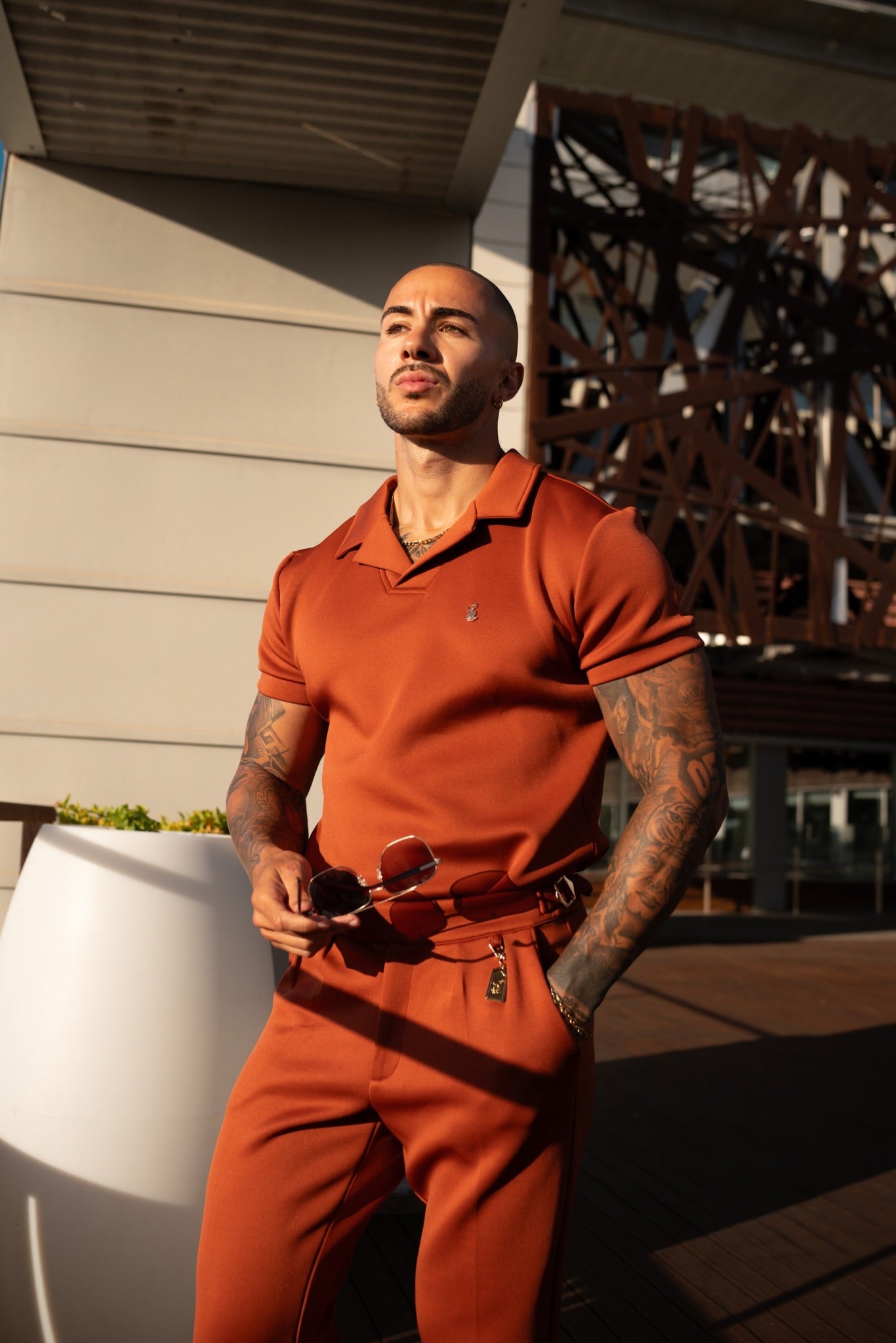 STRETCH COTTON REVERE COLLAR POLO SHIRT – BURNT SIENNA